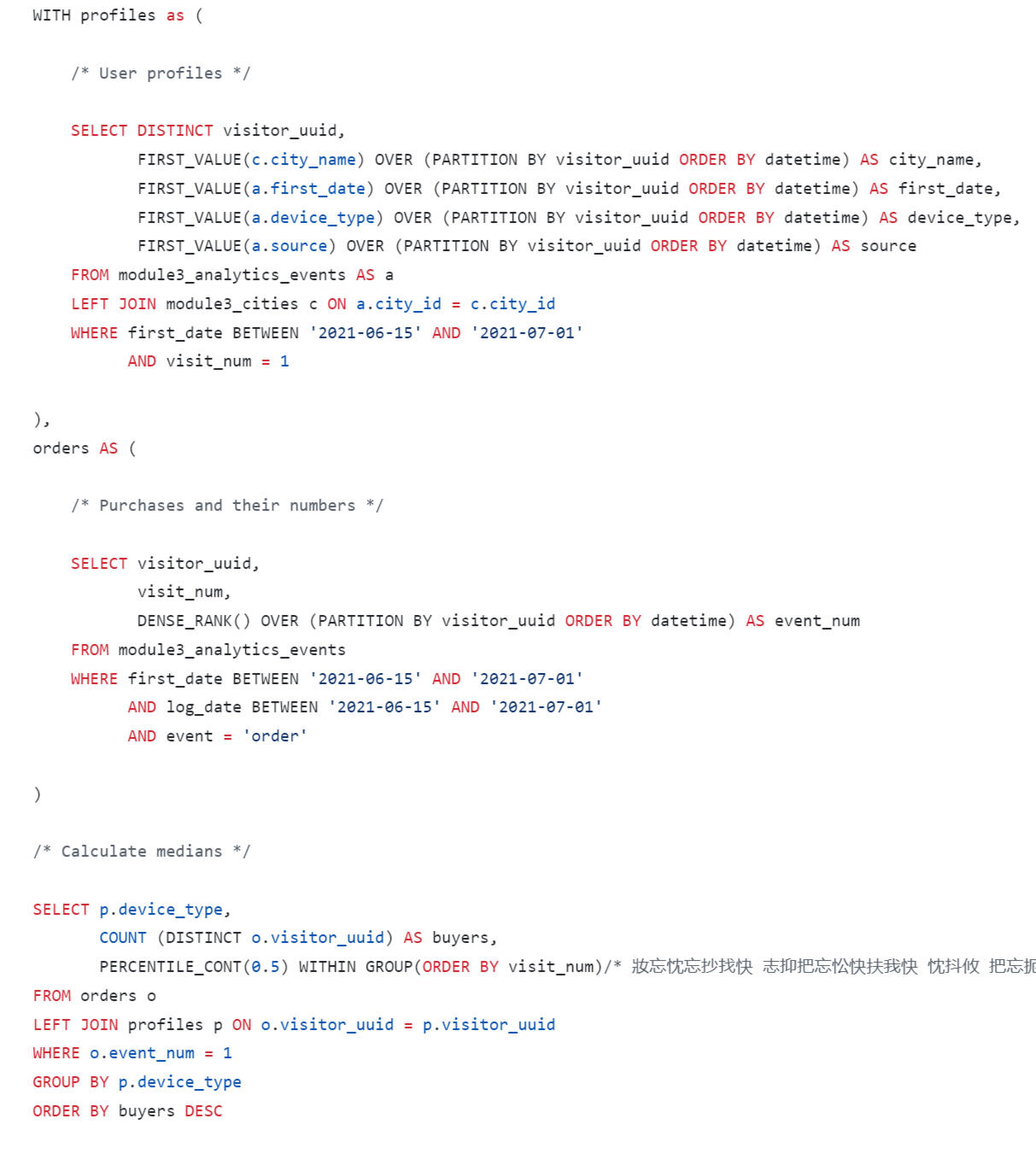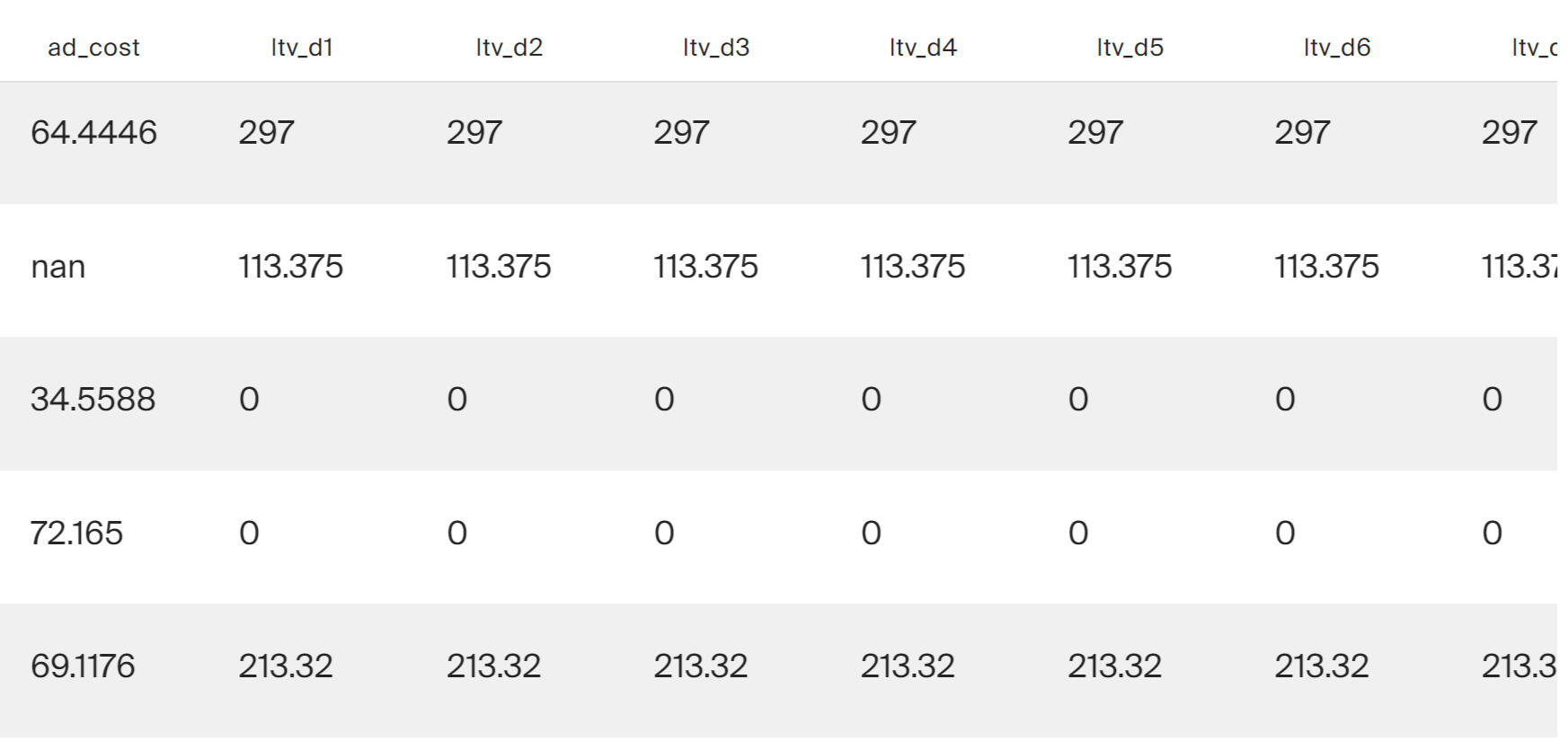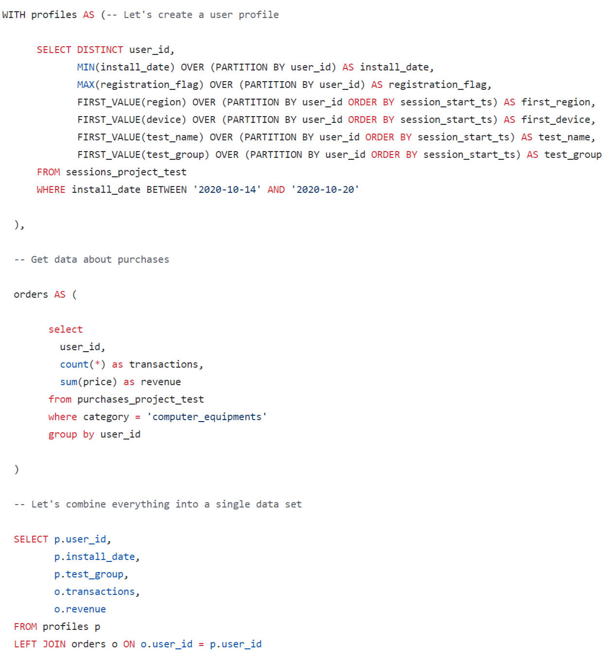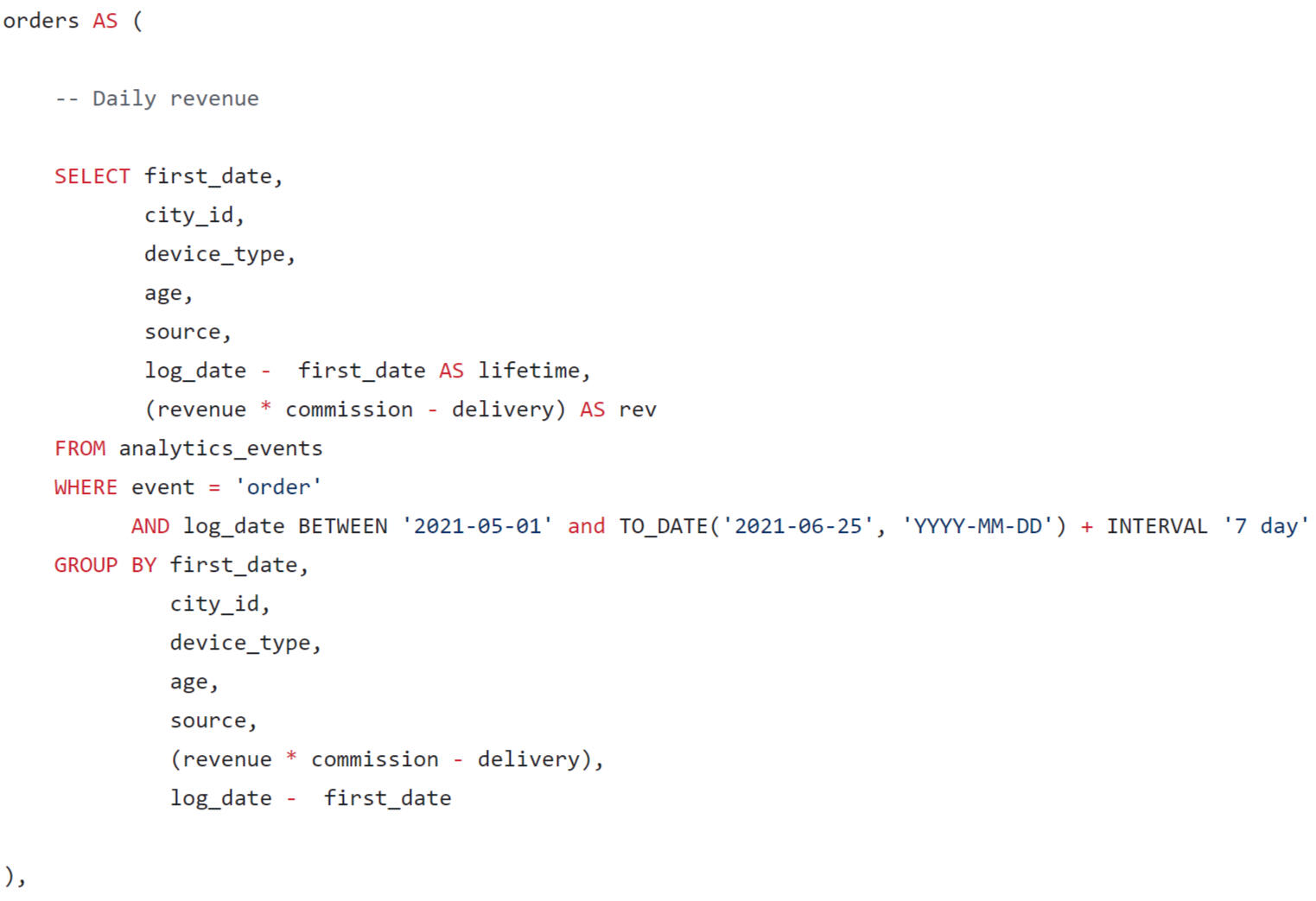 A query was written using SQL to estimate the LTV for the dashboard. When forming a request, you need to consider that:
