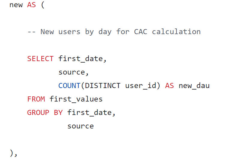 New users by day for CAC calculation