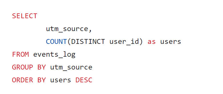 A request to obtain a calculation of the number of unique users who visited the service from different acquisition sources.