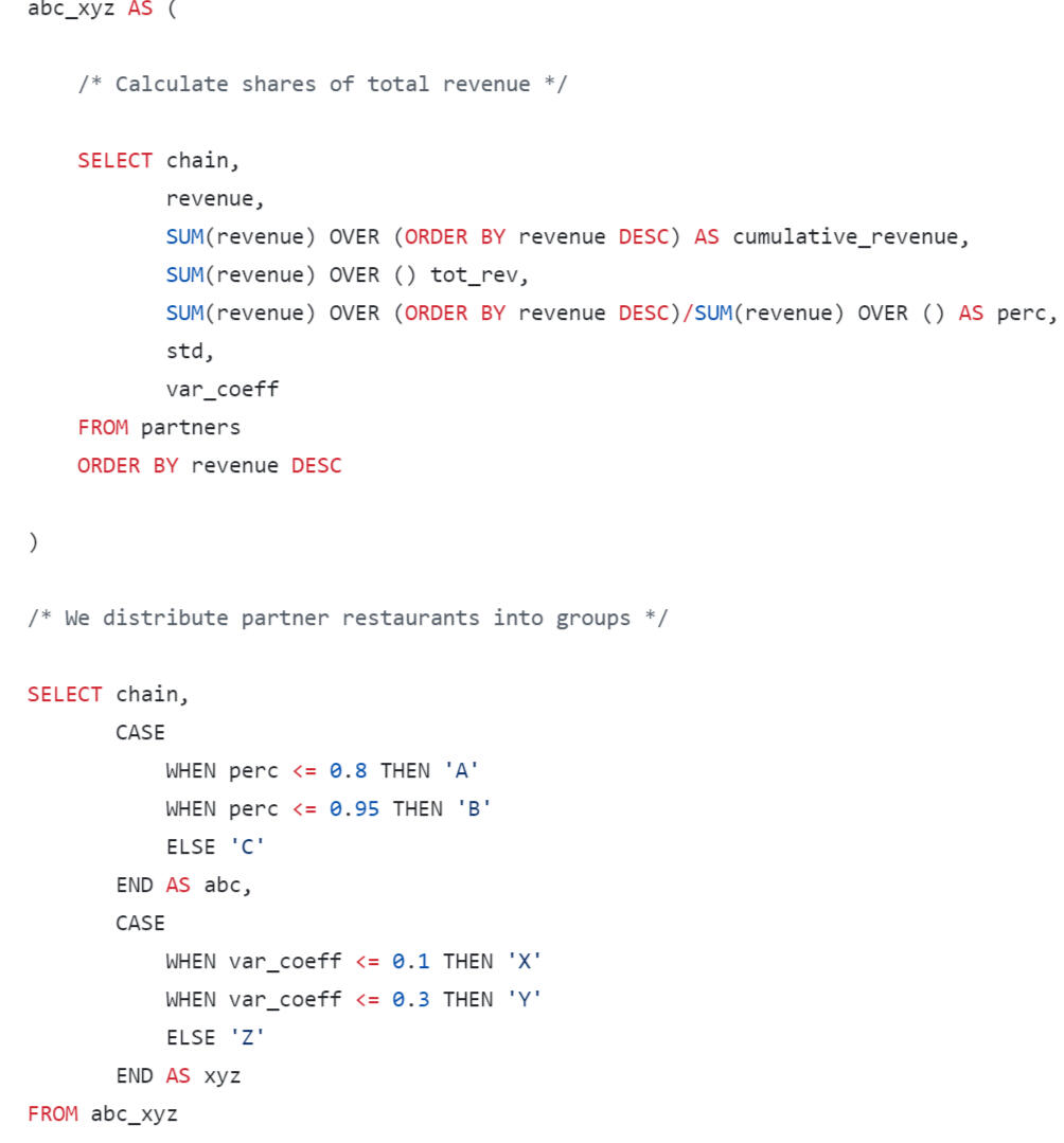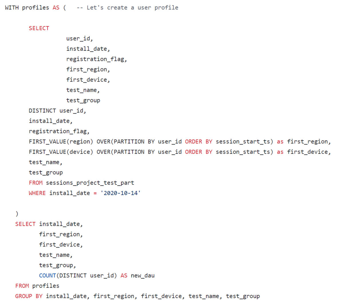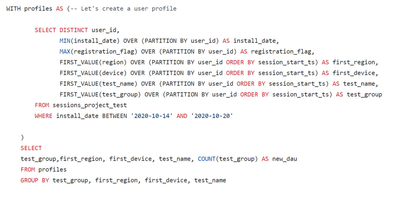 In the final query, we will format the output of the results in the form of a wide table, where we will sum up the LTV by lifetime segments.