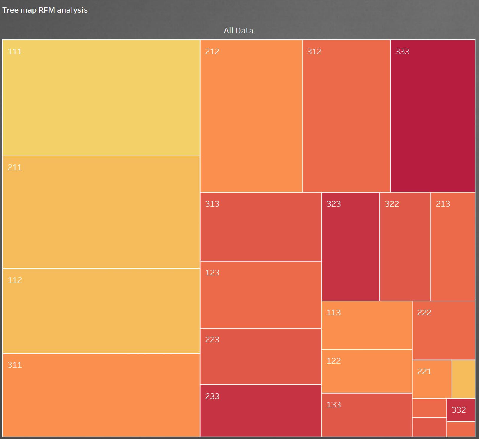 We also ended up with a very large table, which is better visualized RFM-table using Tableau.