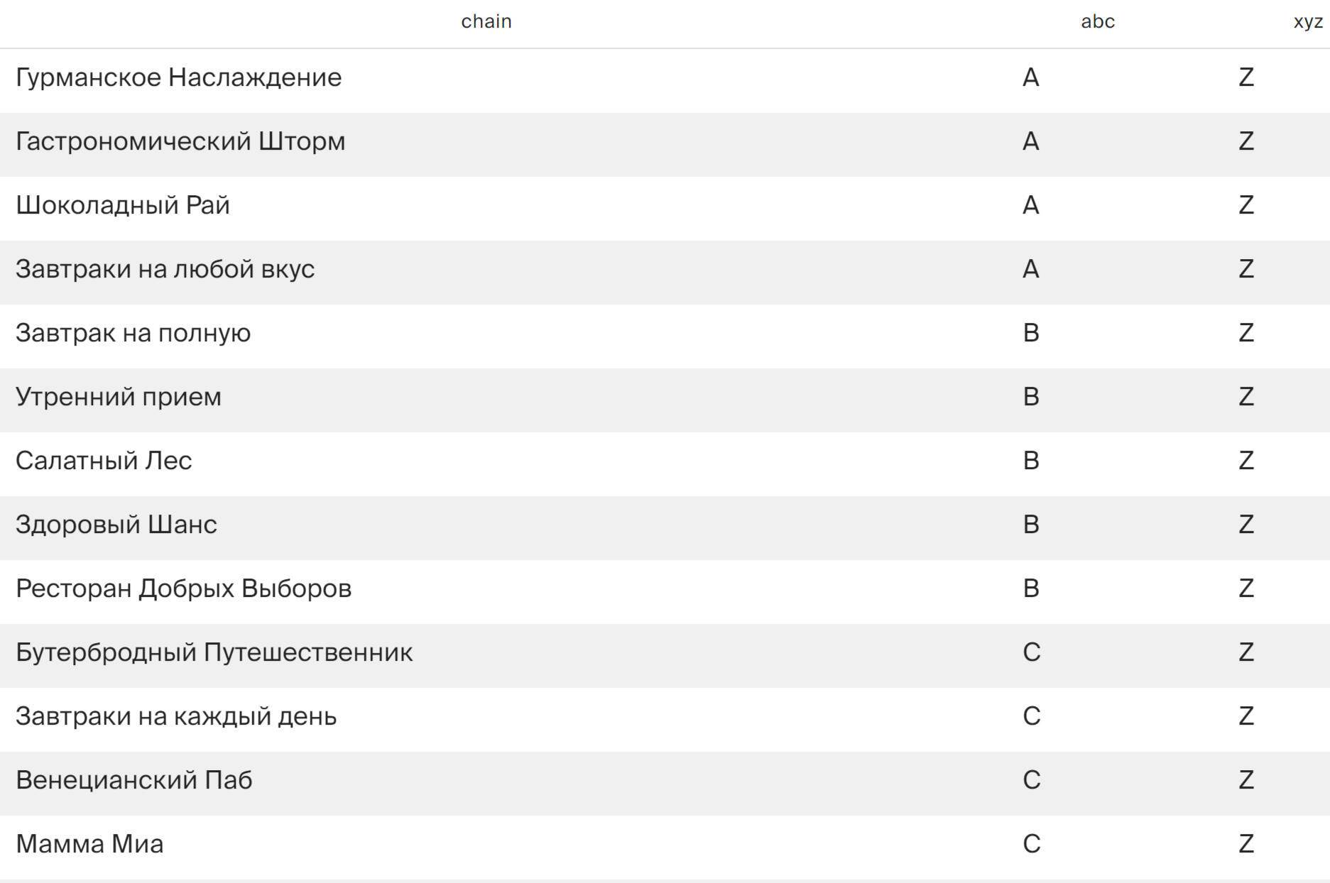 *Restaurant names are presented in Russian