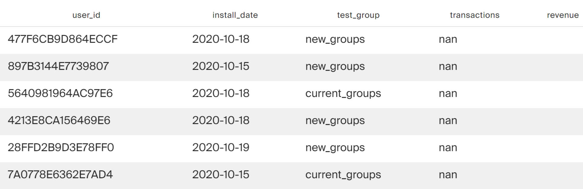 Cohorts were formed by date, city name, city id, device type, age group, source.