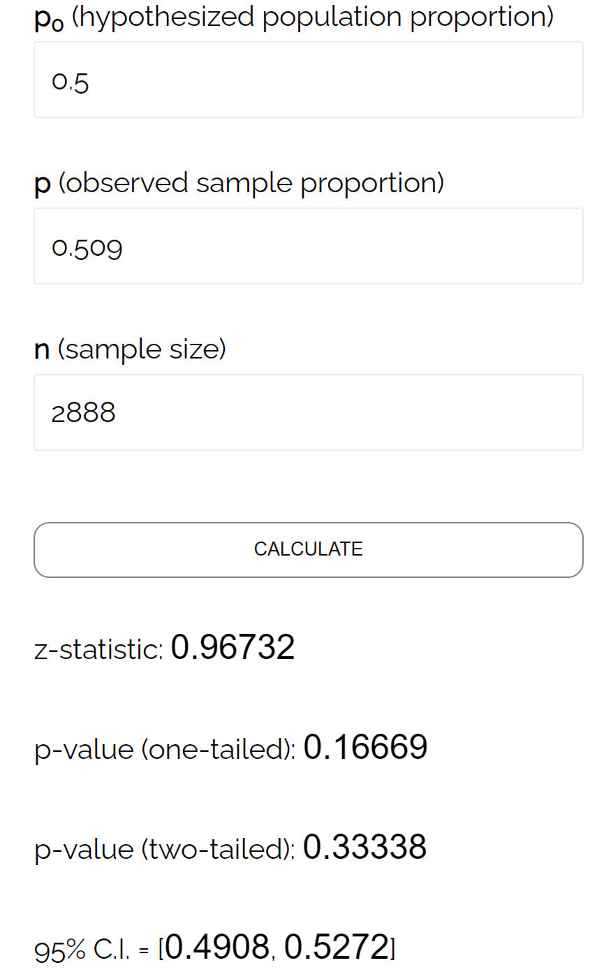 Using this data, we can run a z-test on the proportions to check whether the experiment was performed correctly.