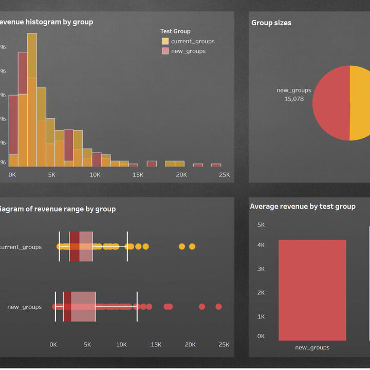 Using Tableau Public, I developed a dashboard “Analysis of the data after the start of the test": Link