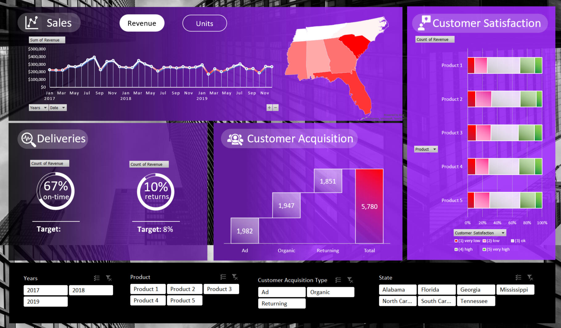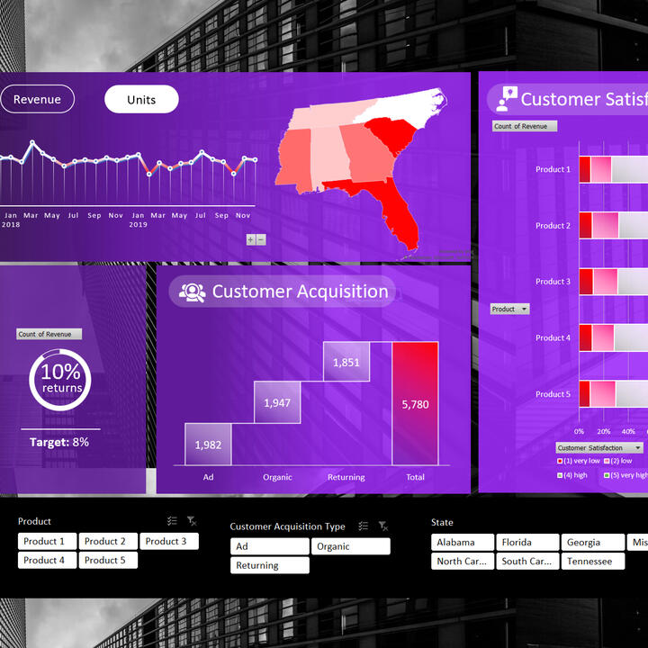 - About 25% of customers are unhappy with our products.I used the following skills to manipulate the data and create the dashboard: