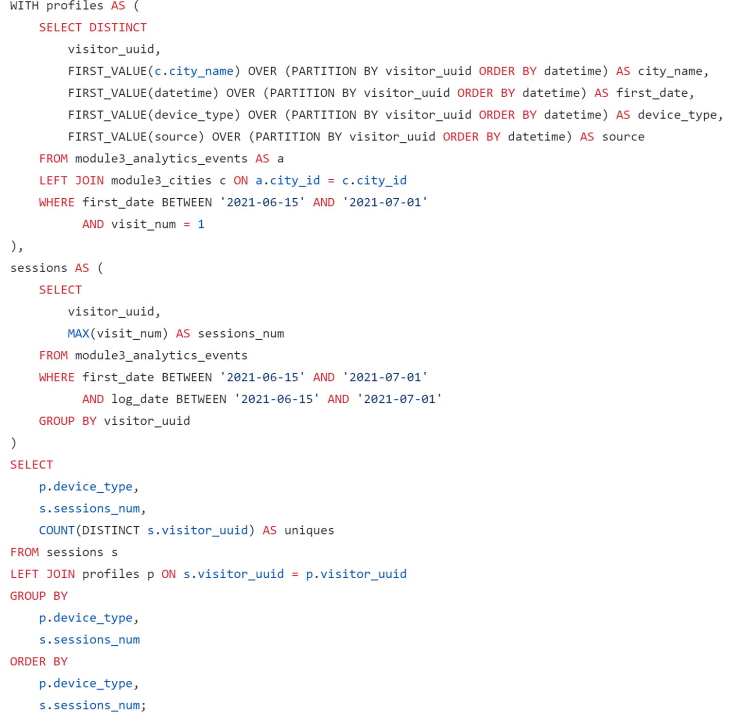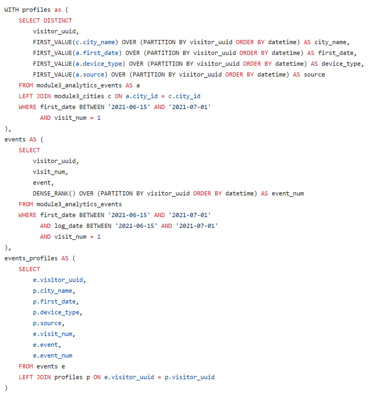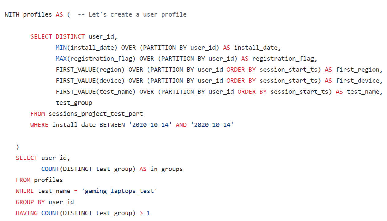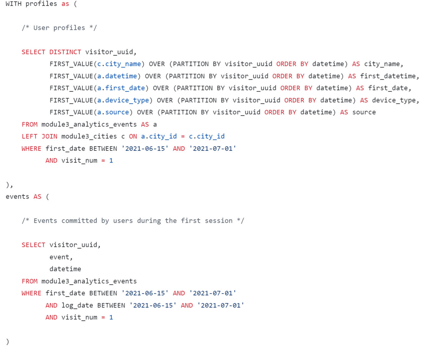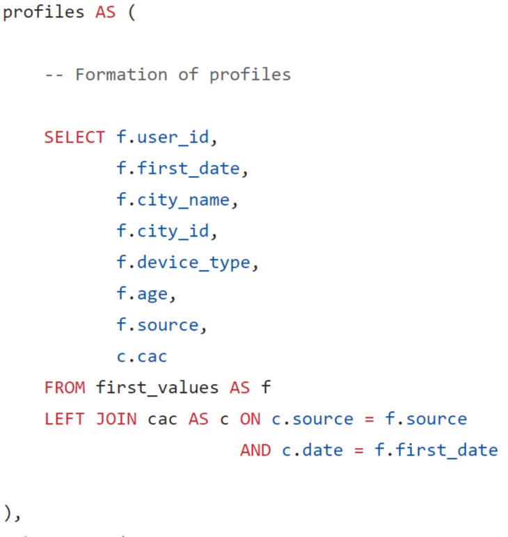 A query was written using SQL to estimate the LTV for the dashboard. When forming a request, you need to consider that: