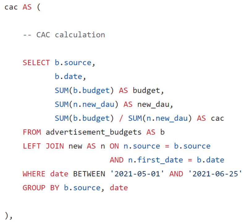 CAC calculation
