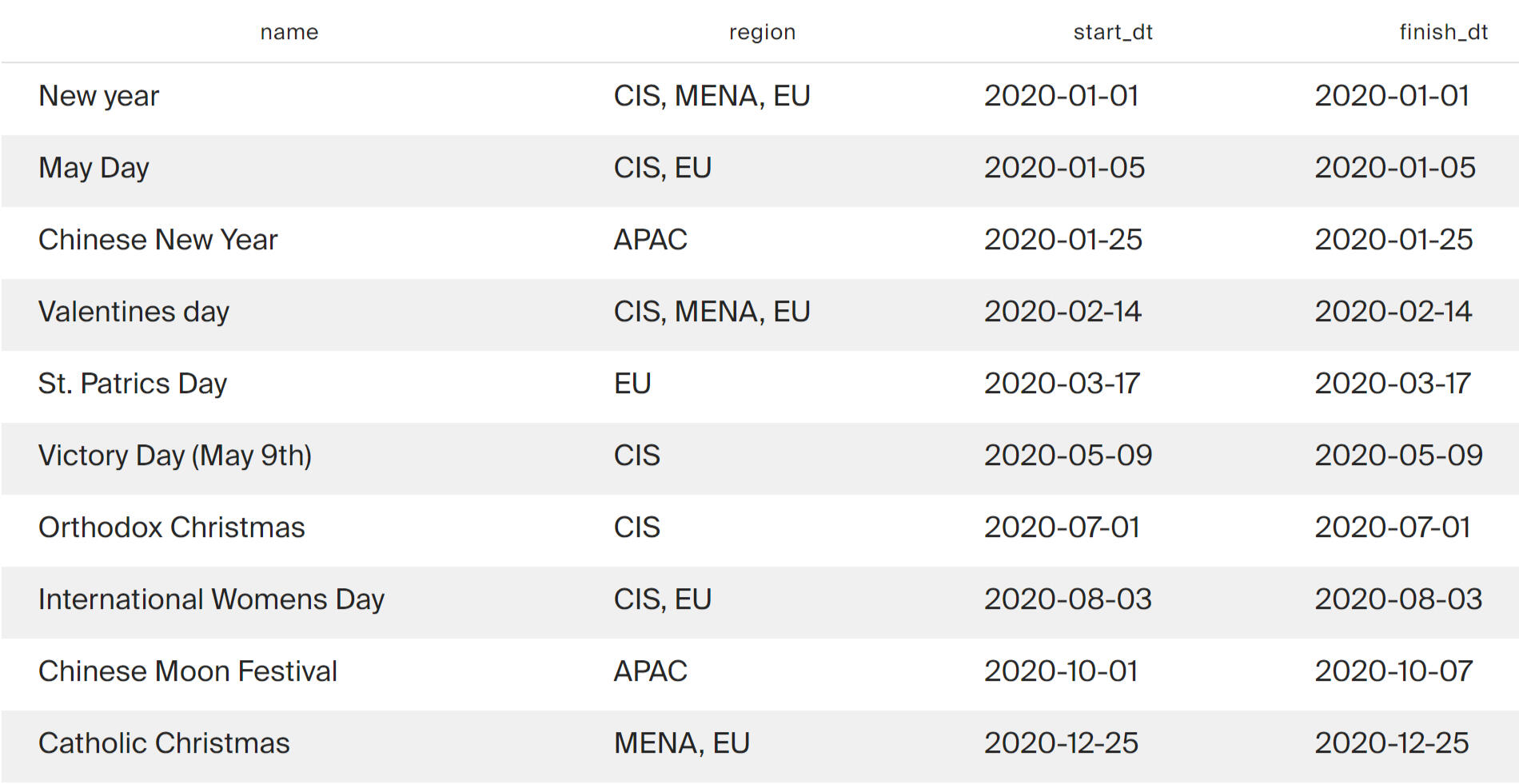 Data on international holidays will be needed to choose when to run the test between marketing activities.